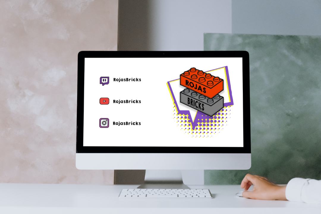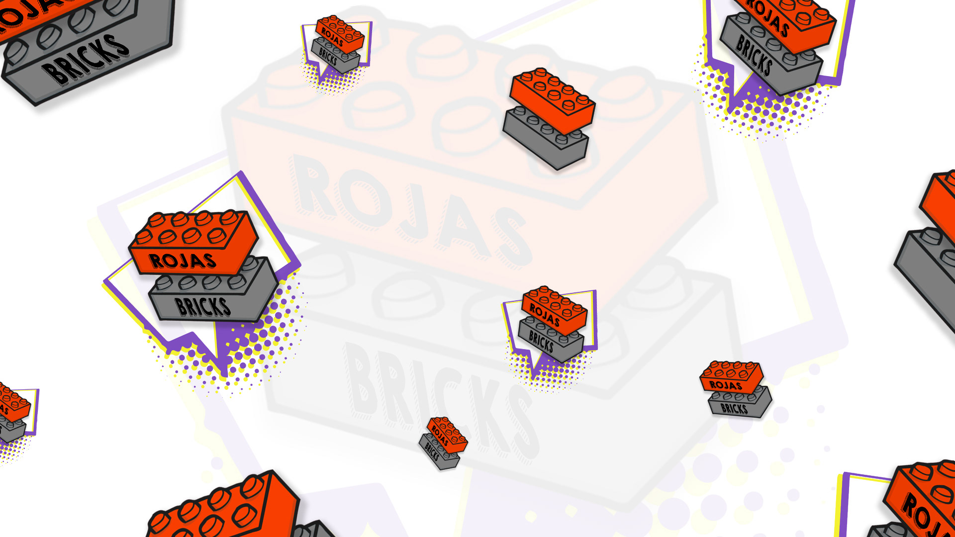 Diseño de logotipo, botones, wallpaper y pantallas de espera para RojasBricks en sus diversos canales de RRSS.